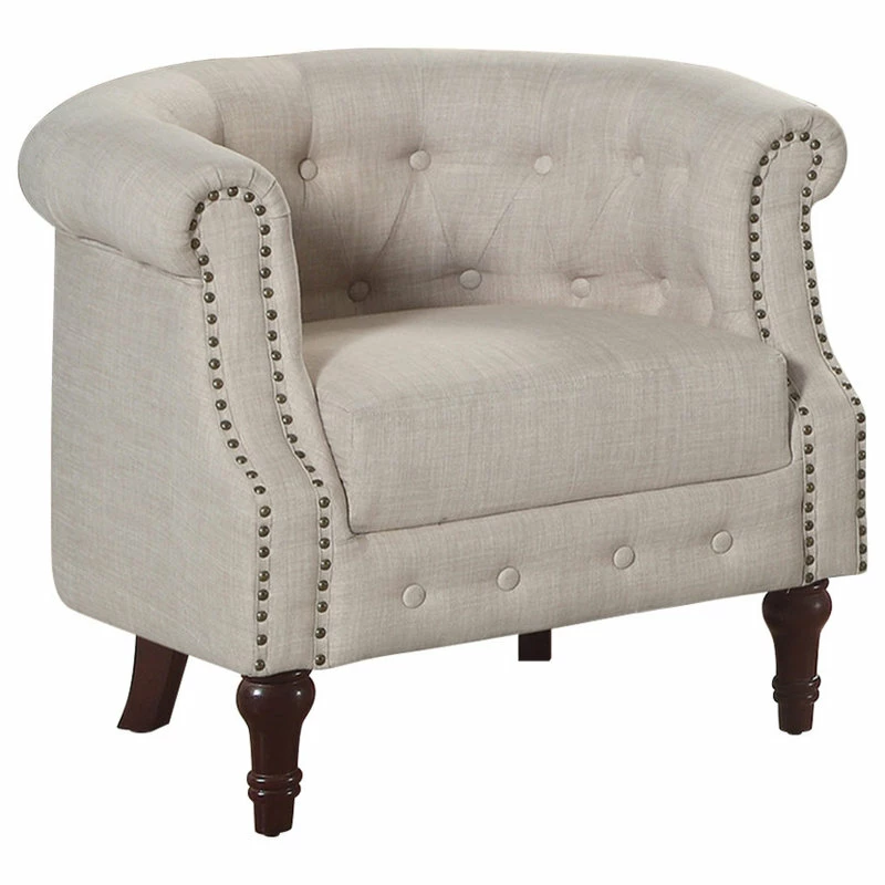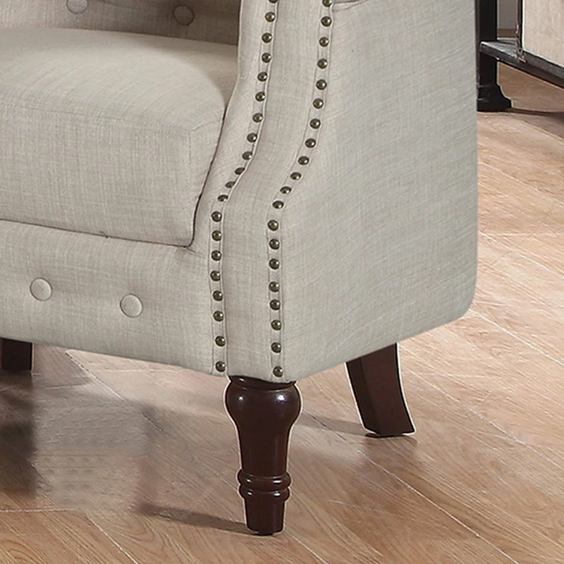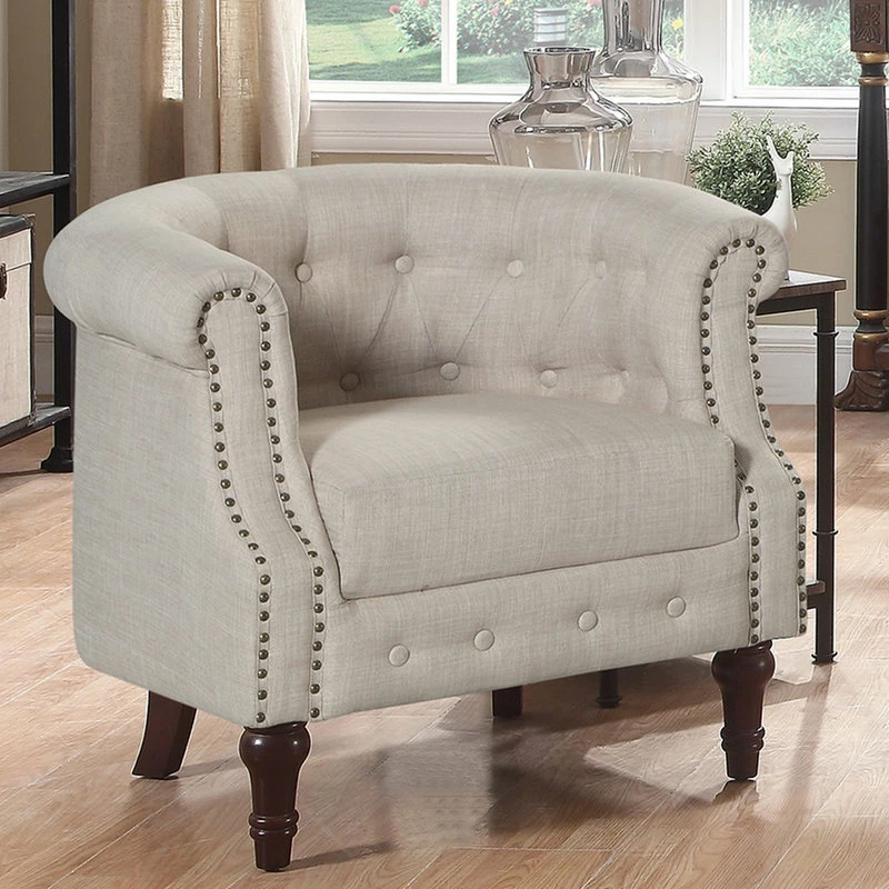 Featuring this elegant Argenziano Chesterfield Chair, this statement piece simply adds a luxurious feel to almost any room. Skillfully handcrafted with soft curve and detail dual nailhead trim chesterfield arms. It also tailors with fabric wrapped finely threaded linen upholstery professionally made with quality and comfort surrounding. Styled upholstered diamond tufted button accents on the interior and match base turned solid feet in dark espresso finishes. This charming chair is a good addition for a cocktail gathering or a cozy evening read. Embellish your home with a pair of these out of century barrel chair will add completion and chic sense to any space.