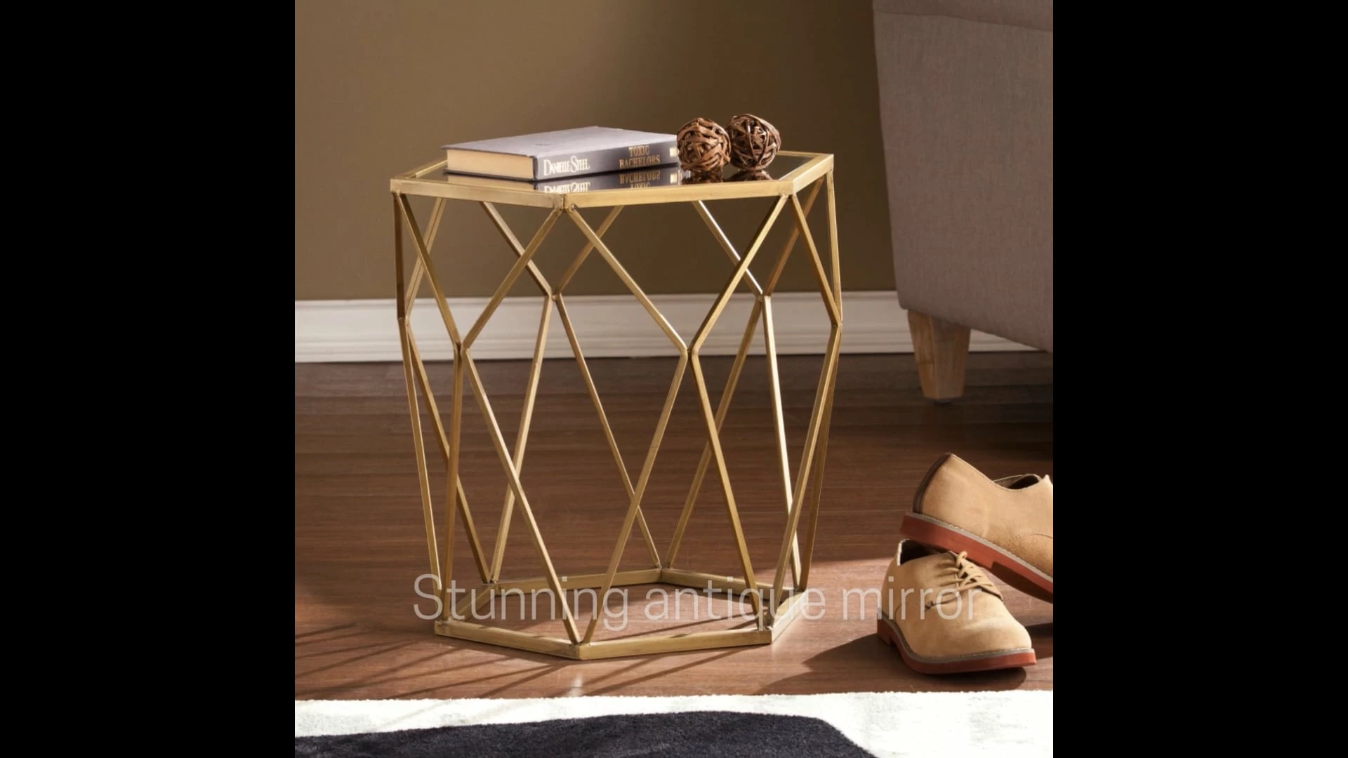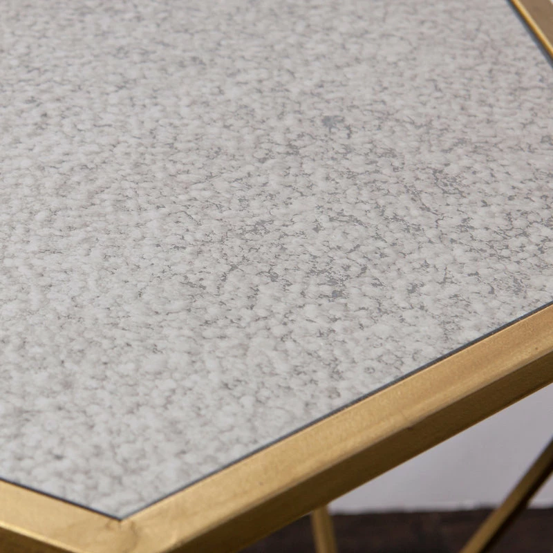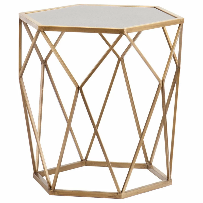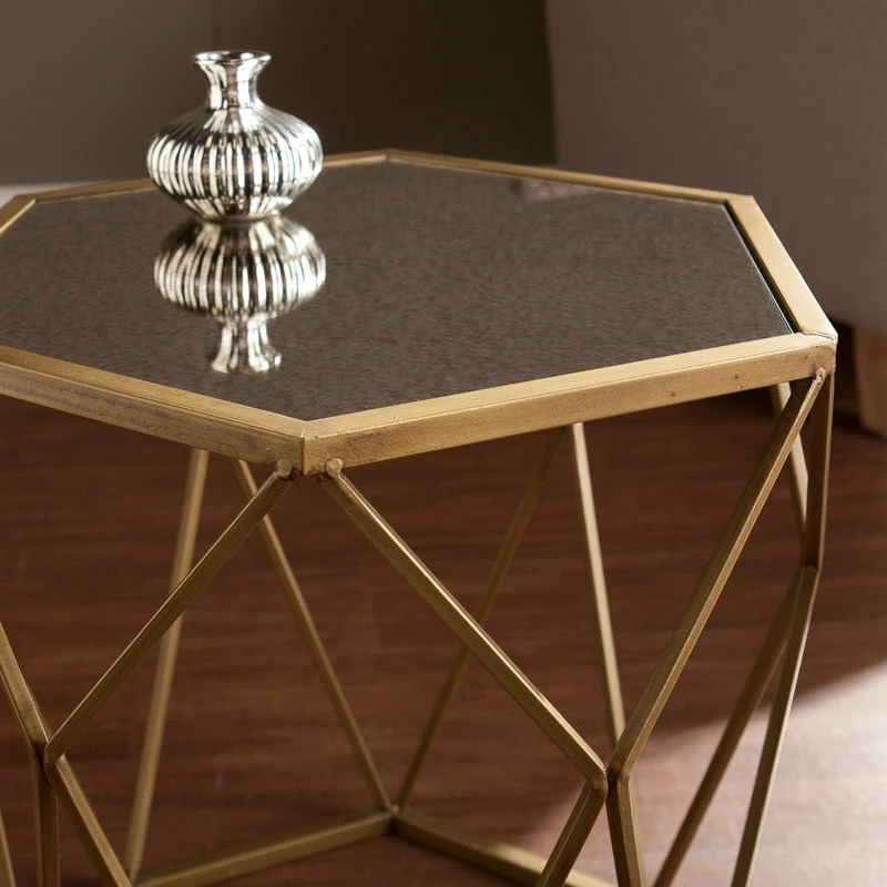 Let the striking opulence lure you in from any angle and elevate your living space with the geometric appeal of this glamourous accent table. Revealing, gold design creates a captivating shadow effect, while the antique mirrored hexagonal crown enchants an elegant lamp or slim vase. In your living room, dining room or home office, this chic accent table basks your home in tantalizing panache.