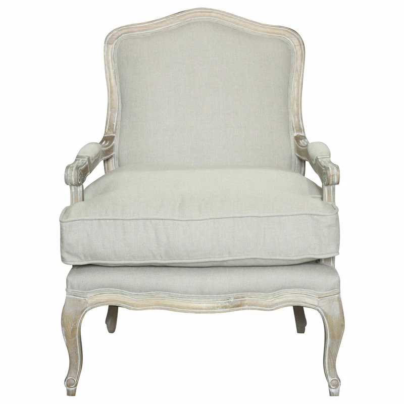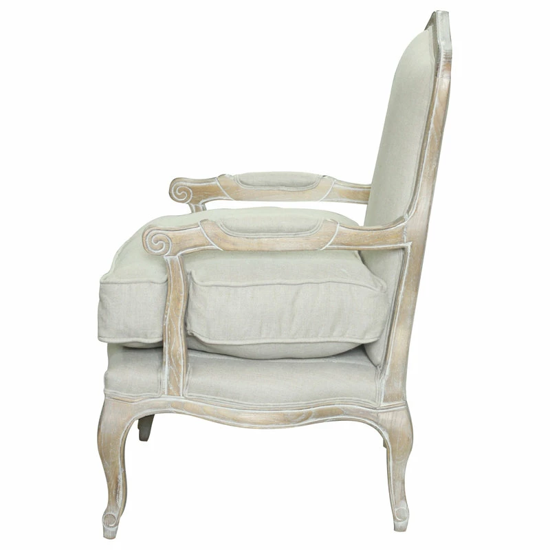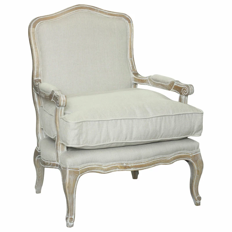 Shatana Home Rodney Chair, Wood, Antique White; Fabric, Linen