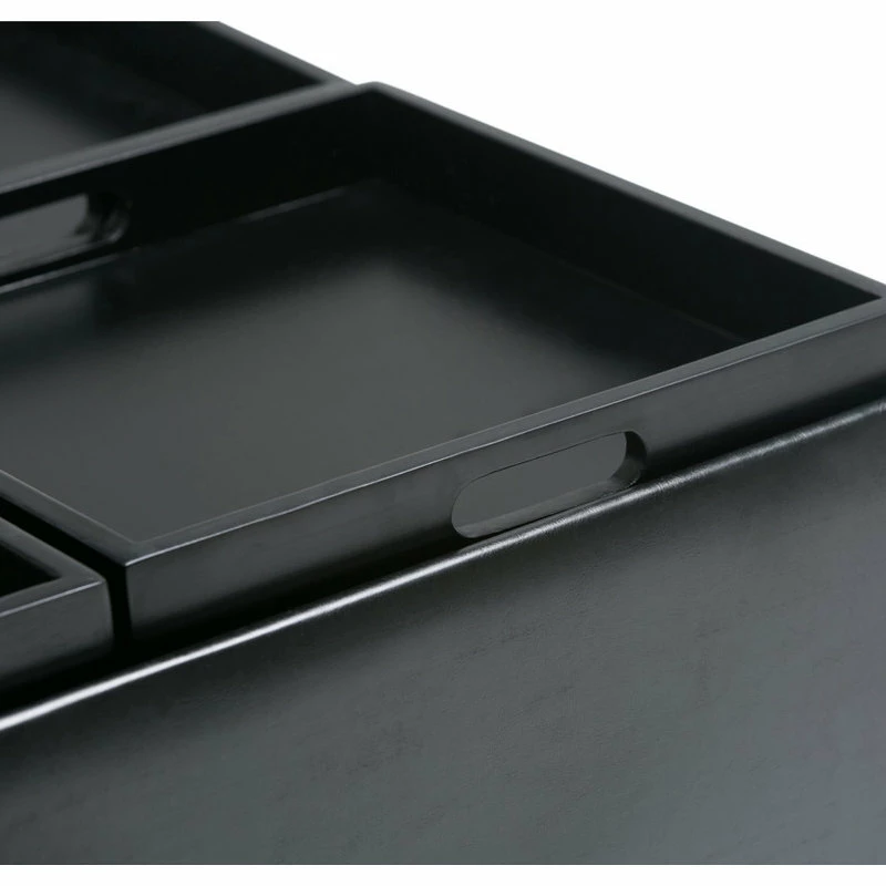 - Upholstered in a durable Midnight Black Faux Leather