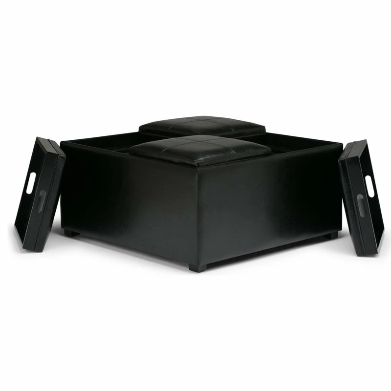 Having purchased your new Sofa and Love Seat, you are looking for a larger square furniture piece to use as a Coffee Table. You want it to be fully functional with plenty of storage. The Avalon Large Square Coffee Table Storage Ottoman is upholstered in durable fabrics and is the answer to all your needs. This attractive ottoman is extra strong and features a beautiful stitched exterior. It has four flip over trays for easy entertaining, or eating beside the TV and has an extra large storage compartment to hide away all of your clutter. Whether you are using it as an eating surface, a storage unit or just to put your feet up, the Avalon Coffee Table Ottoman is a great and functional piece of furniture.