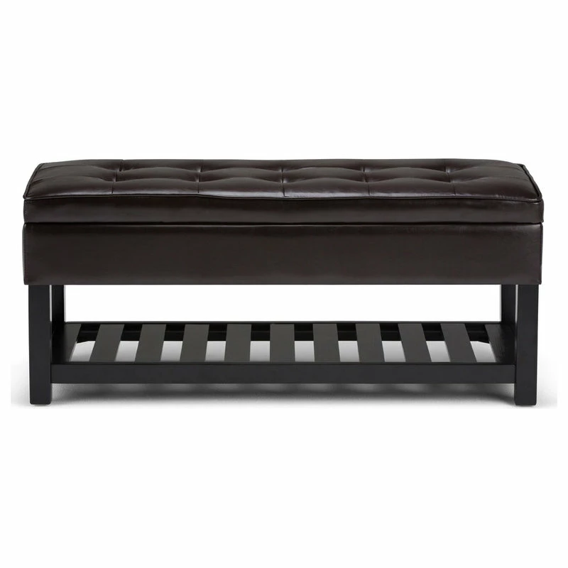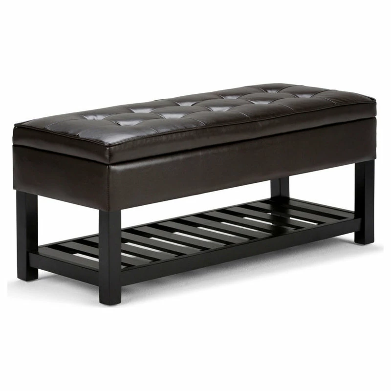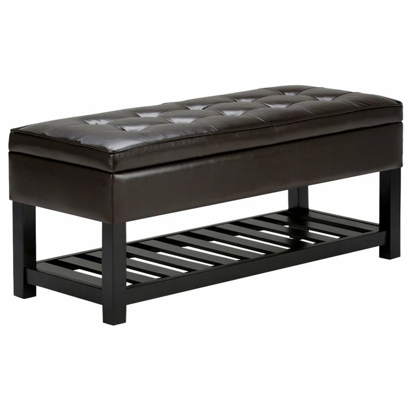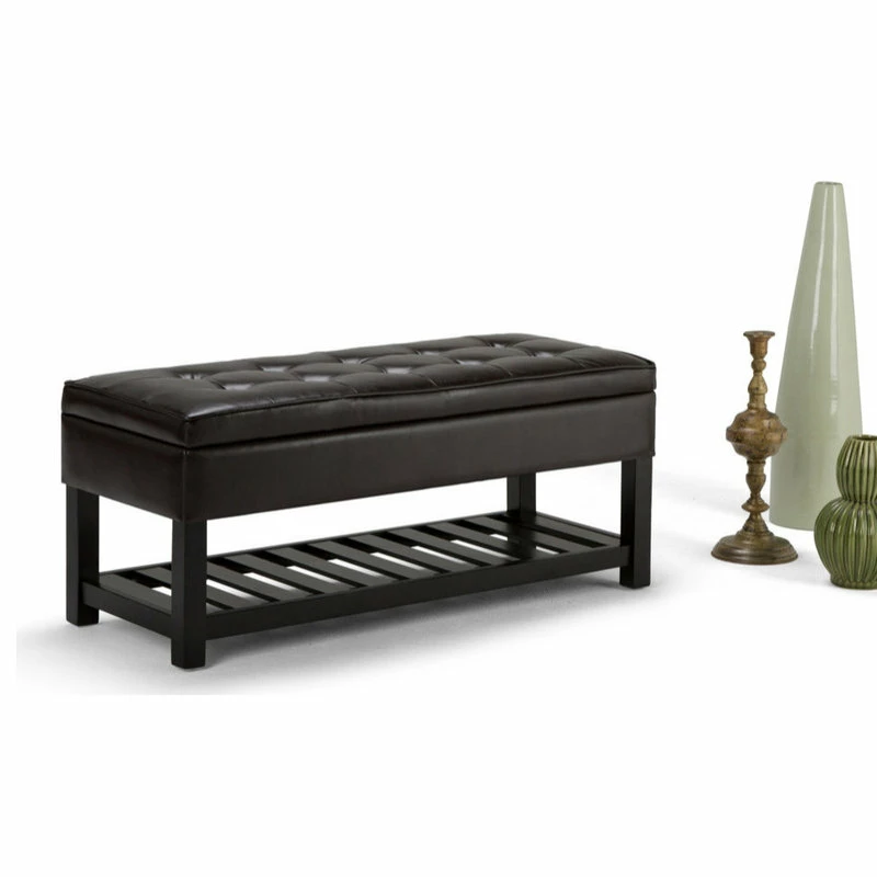 When the clutter is overwhelming, and you are looking for that perfect solution – look no further. For a stylish solution to your storage needs, the Cosmopolitan Rectangular Storage Ottoman Bench features a beautiful tufted look with an open slat bottom storage area and large interior storage space. The unit is upholstered with durable fabrics and is extra strong and sturdy. Whether you use this Ottoman Bench in your entryway, living room, family room, basement or bedroom, it will allow you to hide away all that mess.