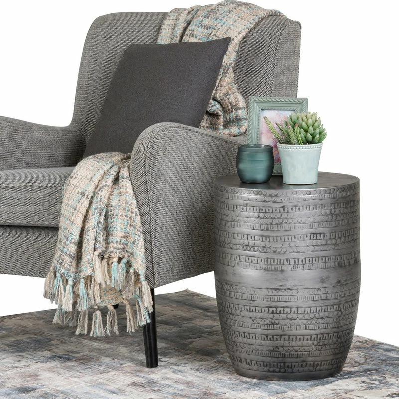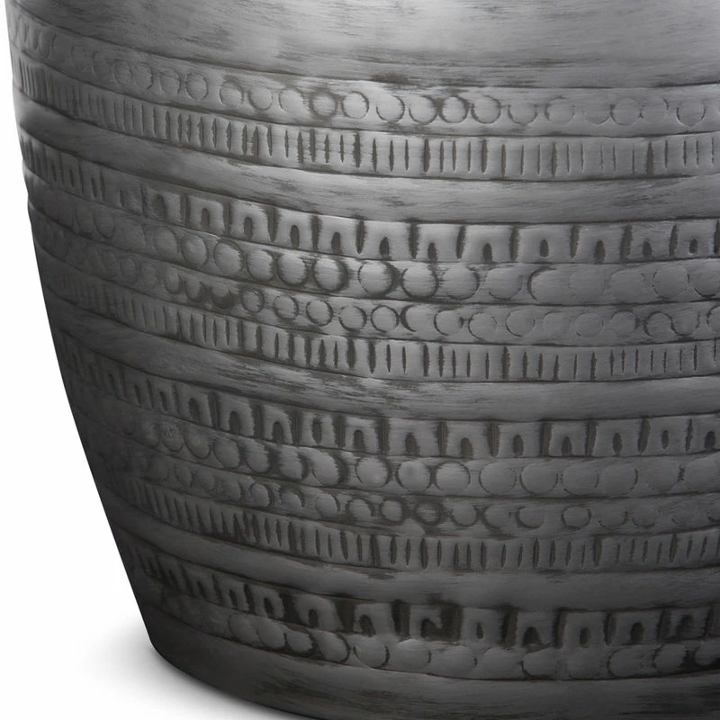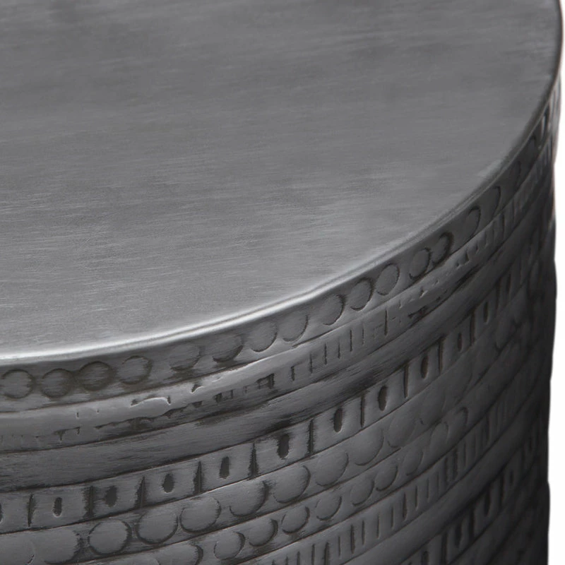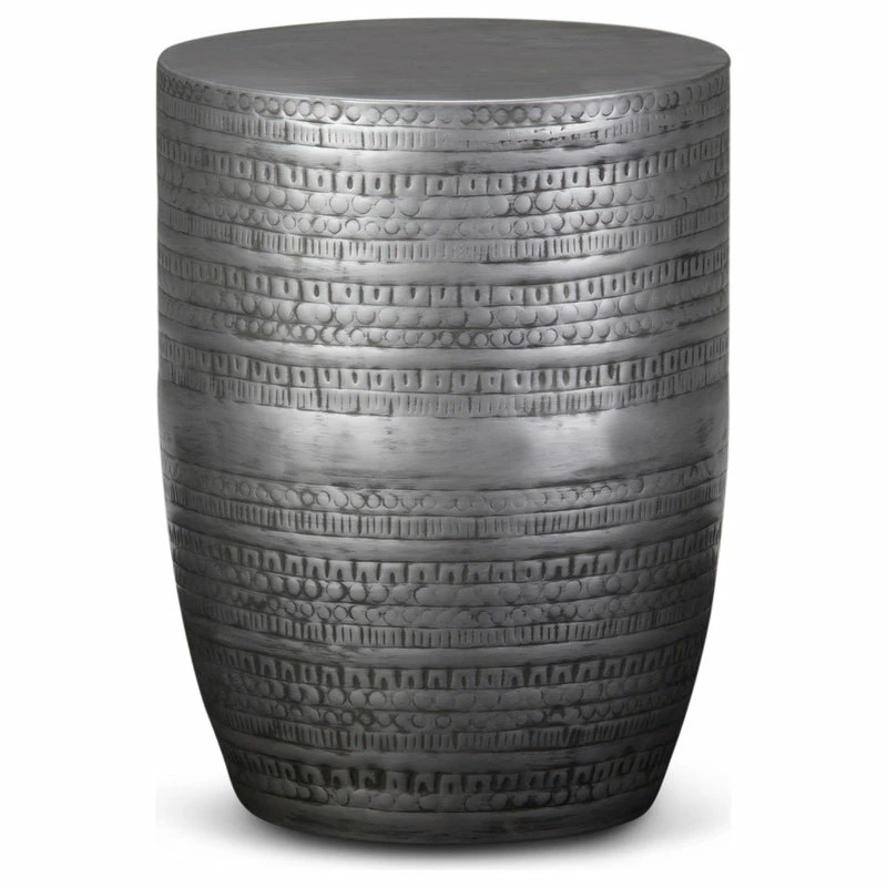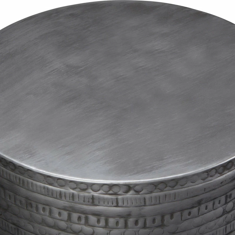 The Johnsen Large Metal Accent Table provides a great finishing touch to virtually any space. Crafted from iron, the table features a distinctive textured finish. The table has a unique look and can be used as an accent piece in any room. Use it as an end table by a couch or chair or in the bedroom as a side table.
