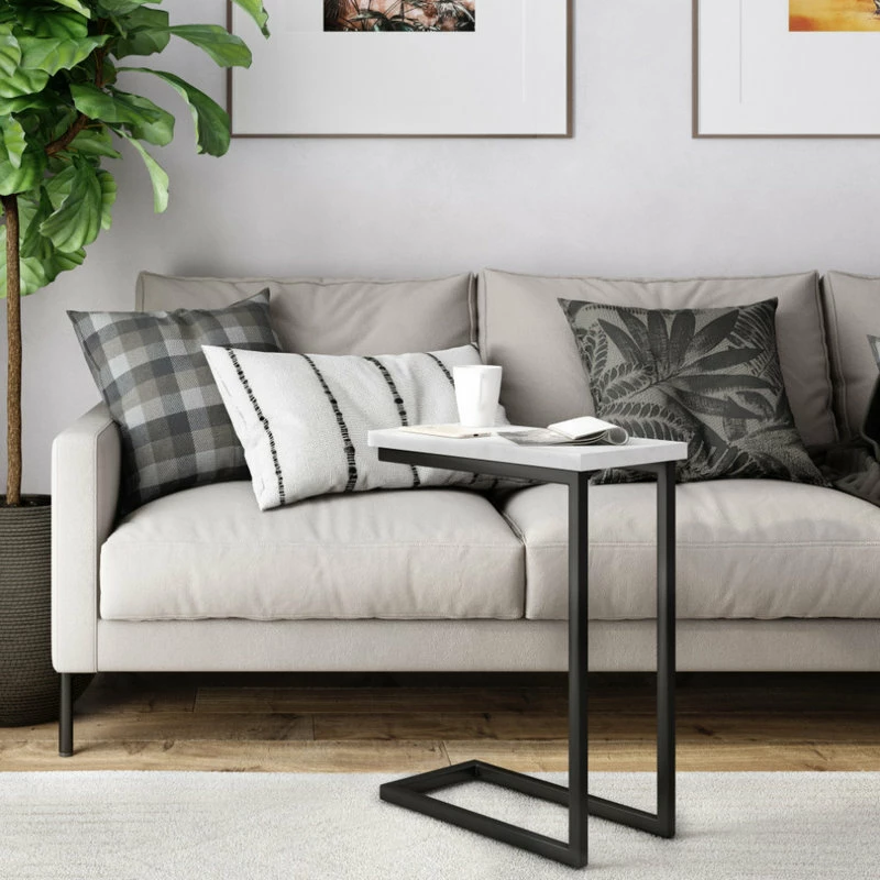 Skyler furniture is industrial in sensibility, modern in approach and perfect for the stylish individual who is looking for that C table which will make eating in the living room a reality. The box shaped steel metal base mixed with solid Mango wood or marble fits smoothly into most modern, contemporary, or eclectic home designs. C shape design allows you to slide it under the couch or chair for an easy-to-use laptop computer or tablet table.
