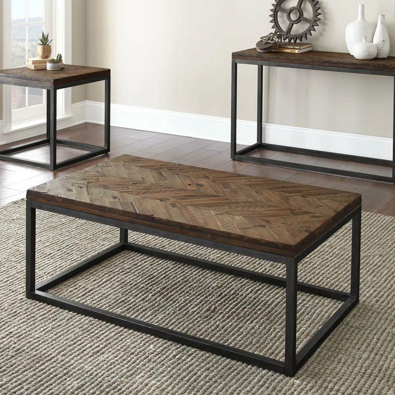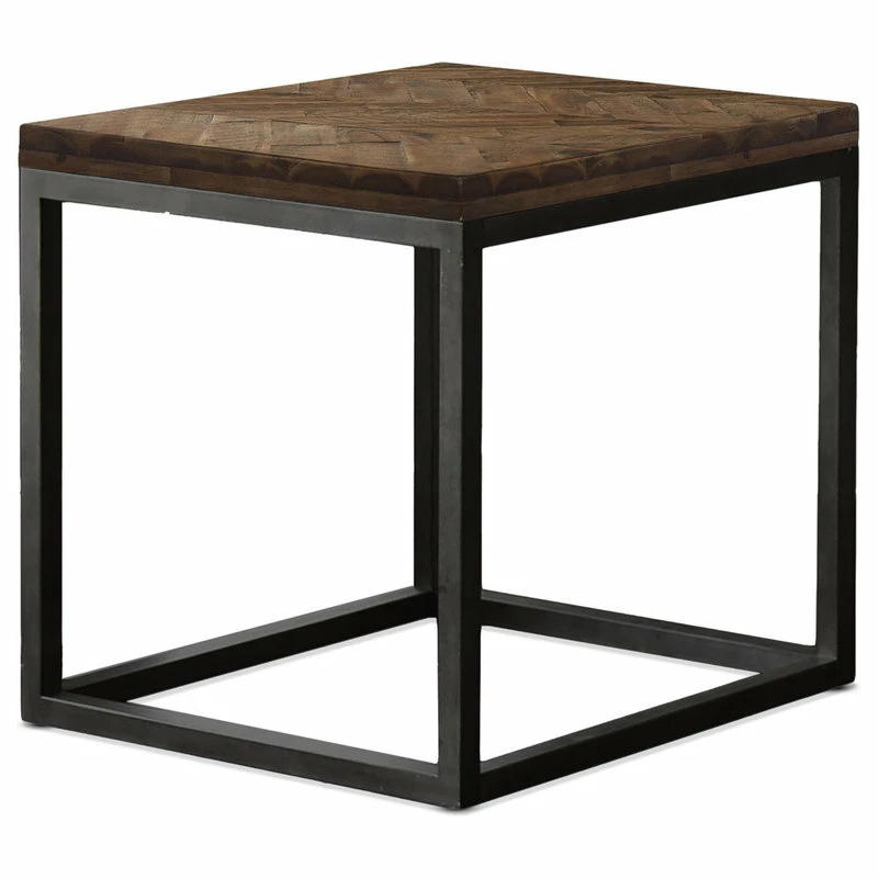 Modern, rustic styling is the essence of the Lorenza Occasional Collection. Distressed solid wood acacia tops feature a striking herringbone pattern contrasted by the vintage charcoal finish of the steel base. Adding to the impressive look of the Lorenza End Table is the unique double top design. Give your guests something to talk about with the addition of this dynamic collection to your home. Also available in this collection are the cocktail table and sofa table (purchase separately). Your purchase includes one end table.