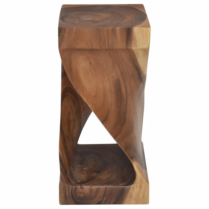 Solana brings a bit of whimsy to the accent table category with this side table carved from solid Acacia wood. The table appears to have been twisted out of the ground and placed directly into your home with its beautiful carved details and natural wood finish. Use as an end table, visually alluring display, or plant stand.