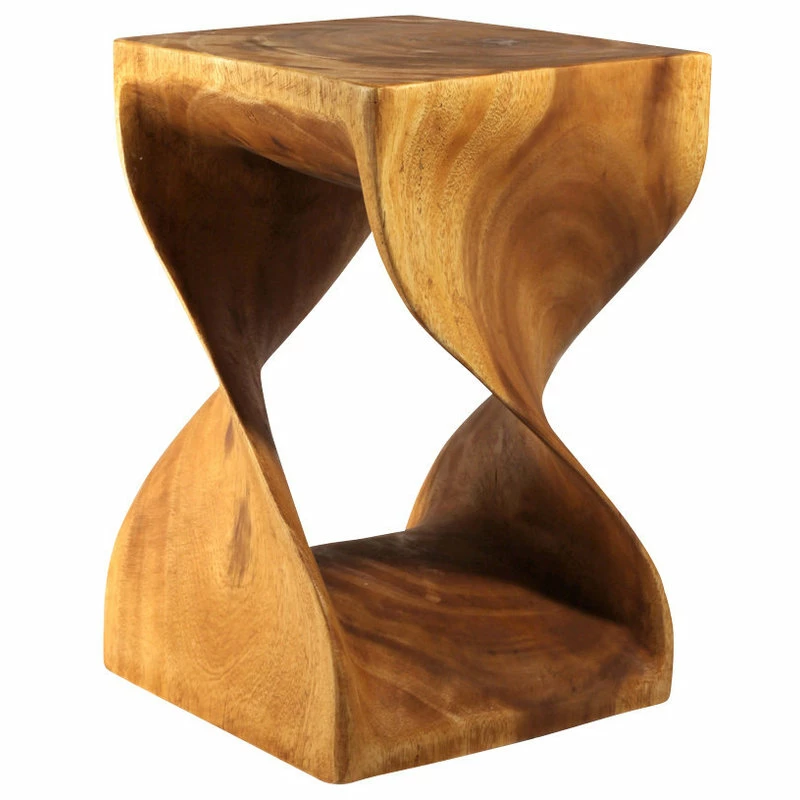 This piece will get your heart all twisted up with adoration! Hand carved from eco-friendly Monkey Pod wood with an eco-friendly Livos Golden Oak finish, this Twist sits 18 inches tall and 12-by-12 inches in width. It is truly one of a kind due to the variations in the wood’s colors, grains, and knots. This piece would make a fantastic end table or small display table in a contemporary or transitional home! As with all natural exotic wood products there will be some slight variation in color, texture, and finish color. There will be various separations or cracks on your piece when it arrives – these naturally occurred as the wood was dried and shrank. These variations do not compromise the structural performance or integrity of the wood and are considered inherent to the natural beauty of the design.
