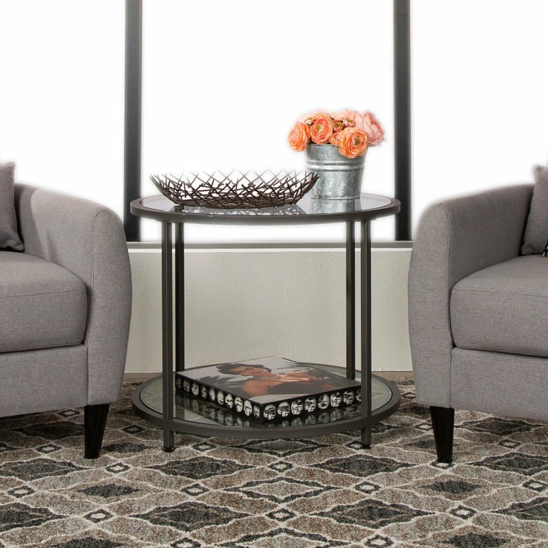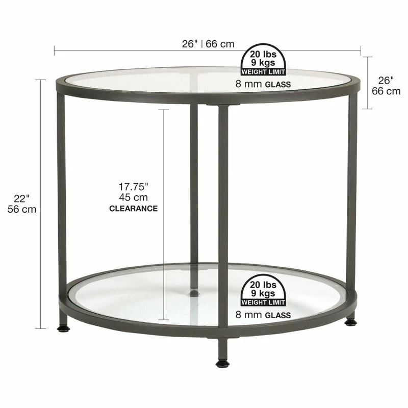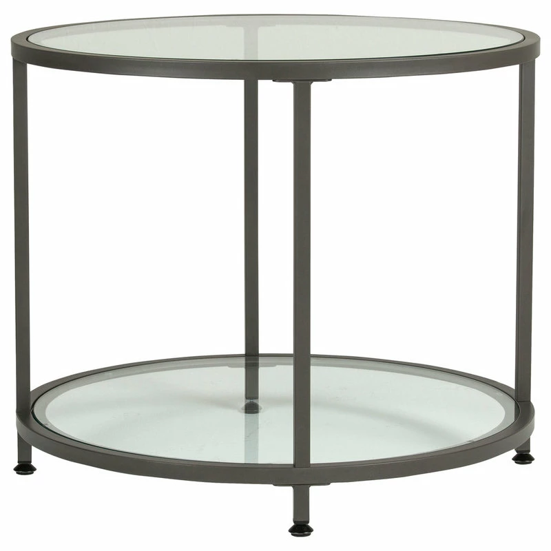 The Camber Collection by Studio Designs Home offers occasional tables with a simple, modern design that will complete your living room or entryway. These tables combine a stylish slate gray metal frame with durable 8 mm clear tempered glass. The simple lines and neutral colors easily complement any room. The multiple tiers provide plenty of display space for photos, collectibles or everyday necessities. Floor Levelers are included for stability on any flooring surface.