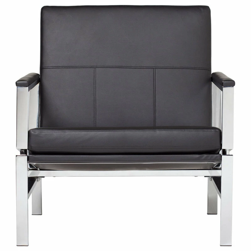 The Atlas Chair by is architecturally sculpted to create a solid and striking guest chair. The mid-century inspired design easily incorporates with today’s modern homes. The bonded leather is tailored to showcase simple lines and is on padded armrests for added comfort. The eye-catching chrome frame is designed with an extra-deep and extra-wide seating surface so you can relax in style. It is available in a classic Black (Item # 72005) or Caramel (72004) finish.