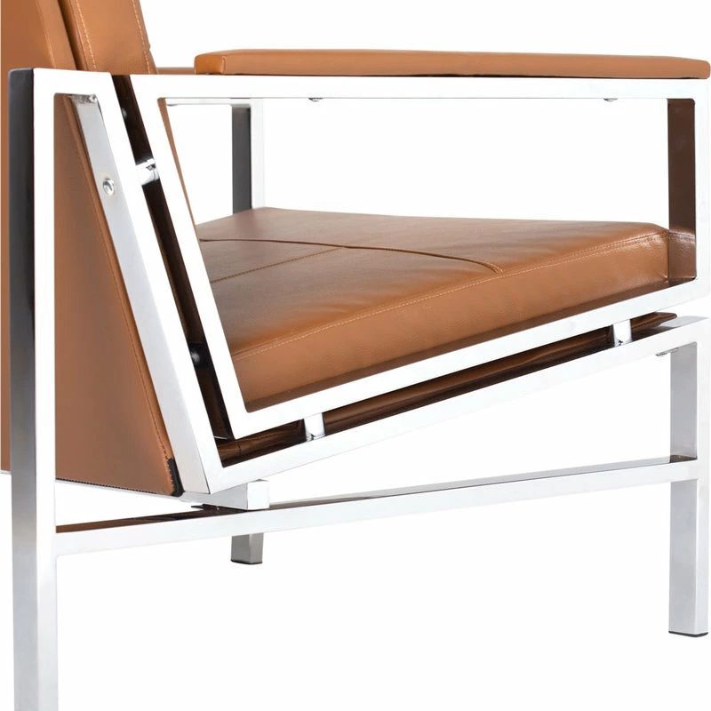The Atlas Chair by is architecturally sculpted to create a solid and striking guest chair. The mid-century inspired design easily incorporates with today’s modern homes. The bonded leather is tailored to showcase simple lines and is on padded armrests for added comfort. The eye-catching chrome frame is designed with an extra-deep and extra-wide seating surface so you can relax in style. It is available in a classic Black (Item # 72005) or Caramel (72004) finish.
