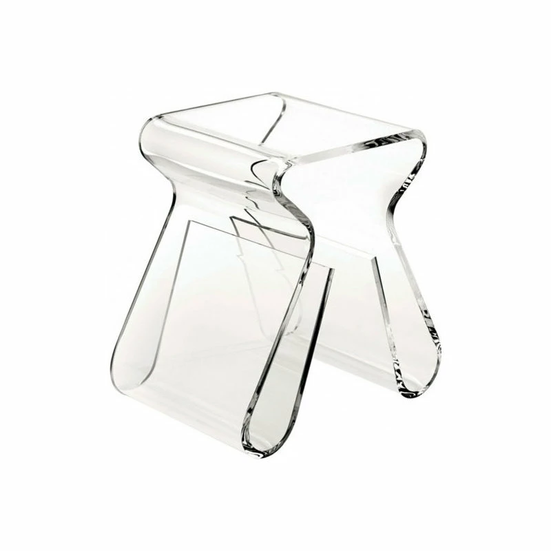 - Acrylic stool and magazine rack.