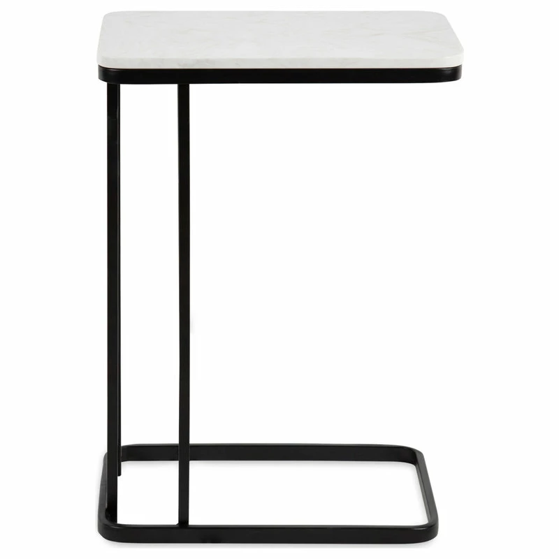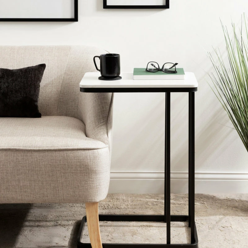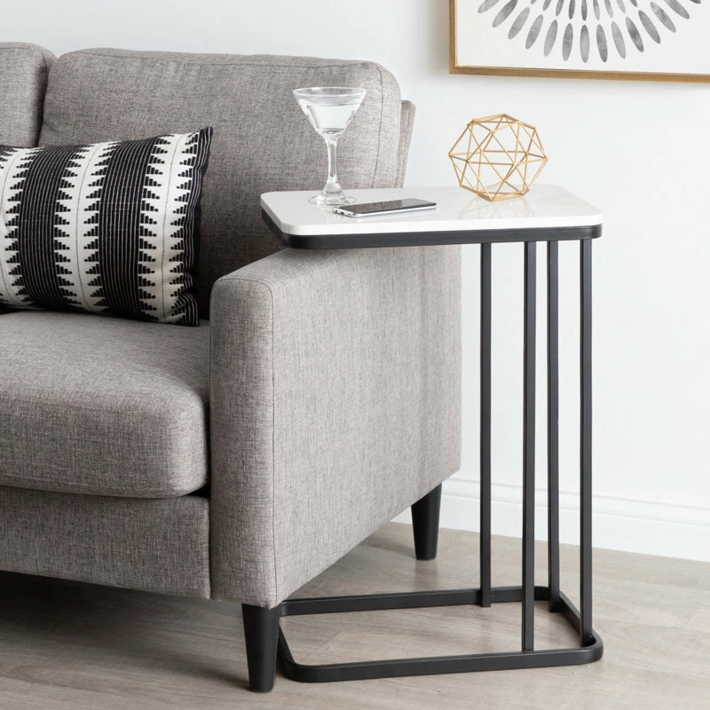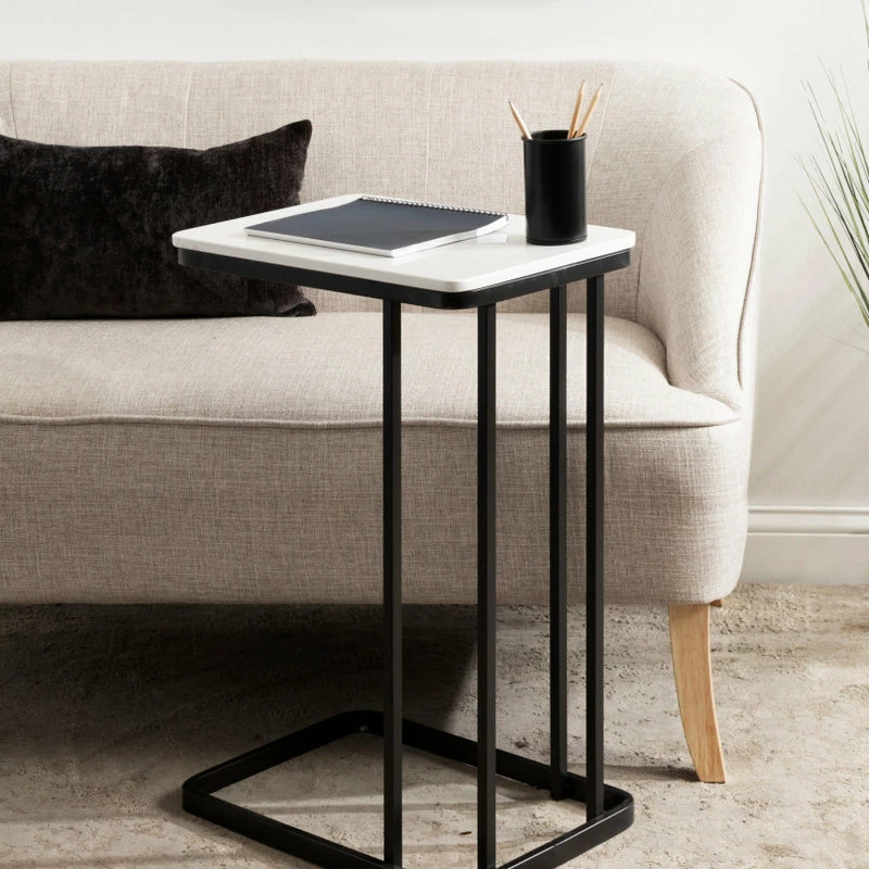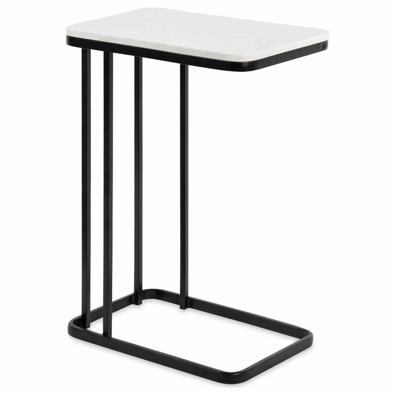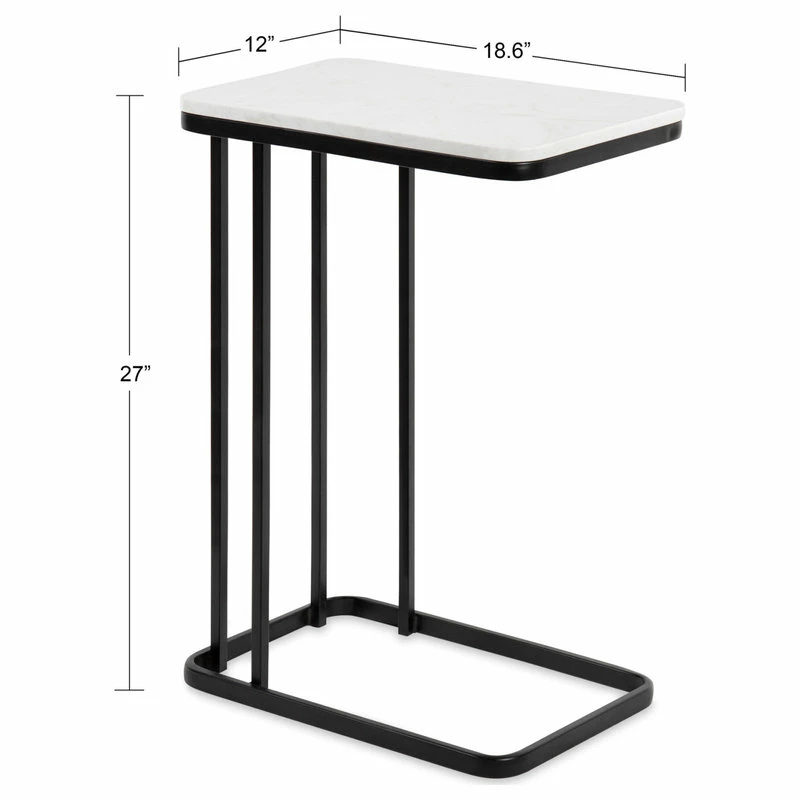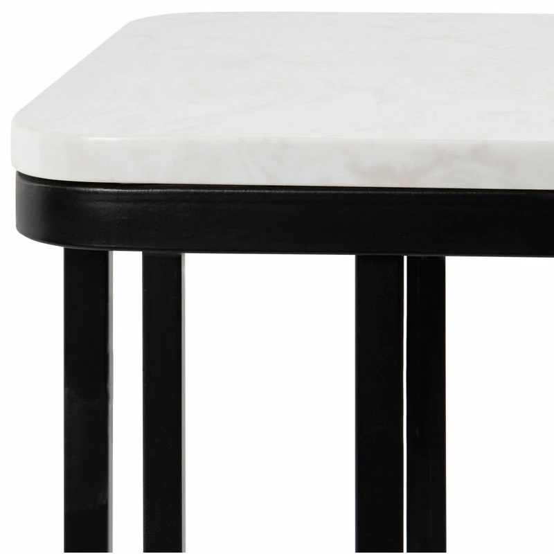This beautiful table elevates your home accents by bringing a modern feel to your home. The Credele Marble C-Table is perfect for displaying small succulents, lovely decorative keepsakes, or photo frames next to your couch or chair. This table has a metal framed with four legs, finished with a refined black color for an eye-catching statement. Each of the Credele Tables also has a sophisticated cultured marble top, showing your guests that elegance can blend in seamlessly in any room of your home. Feature this astounding contemporary accent piece in the living room, bedroom, entryway, bathroom, or even in your entryway. It makes an excellent place to put mail, car keys or small items on your way into your home, too. This C-Table also comes fully assembled for a chic, modern side table you can use anywhere. With low maintenance and a generous table size of 12 inches wide by 18.5 inches deep, this beautiful table is ready for anything.