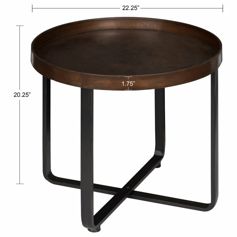 Decorate your home in sleek contemporary modern style with this accent tray table. This small accent table is perfect for use as a side table next to your chair or sofa or even as a nightstand in a bedroom. This table also makes a great plant stand with its tray top to hold your potted succulents. This end table is constructed of metal with a brushed finish. This table is easy to assemble with all hardware included. It stands approximately 20 inches high and has a diameter of 22 inches. Bring modern style into your home with this gorgeous round metal tray table.