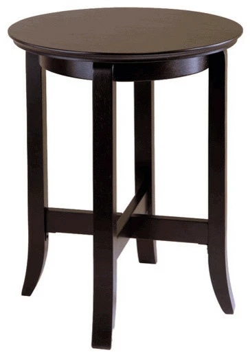 Add extra table space to a living room, den or bedroom with this beautiful and stylish Winsome Wood Toby Round Accent Table. Constructed of sturdy solid wood, the 18� diameter table is a perfect addition for many areas of your home. This small, round accent table coordinates with both modern and traditional decor and will hold a lamp, picture frames, or small knick-knacks. Finished in a rich espresso, the slightly flared legs give this table a simple yet elegance that will enrich any room you decide to place it. The �X� cross stretcher under the table top is a feature that was added to this collection for extra support all while keeping the clean and classic style of the design. For larger beds, sofas and/or rooms, try adding one accent table on each end (each sold separately). Finish off your living area with the coffee table from the Winsome Toby collection for a more unified space (each sold separately). Conveniently packed and shipped in 1 box and ready to assemble. Replacement parts can be requested directly to the manufacturer within 60 days from date of purchase.