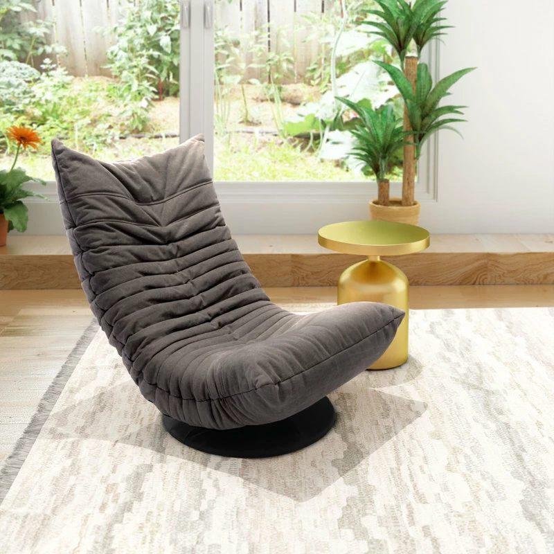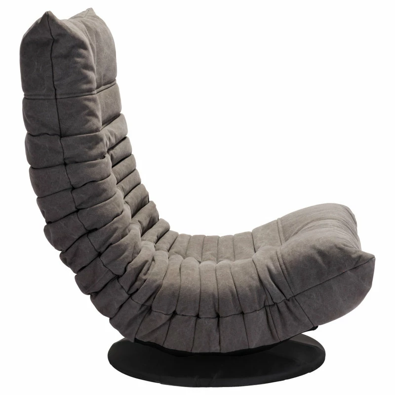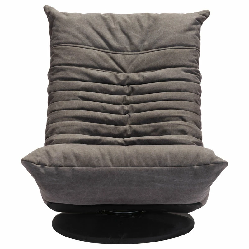 The Down Low swivel chair features a low profile urban design with plush tufted upholstered poly blend denim textured panels. Color options include Beige or Gray to either Swivel chair or matching loveseat
